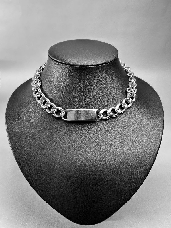 Collar combinado de dos eslabones + dije chapa. 100% acero quirurgico