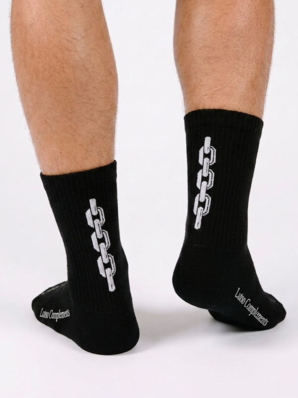 Medias 3/4 confeccionadas con 100% algodón, diseño de cadena en la parte trasera de la caña.