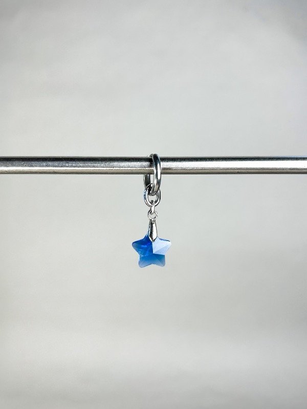 Aro en acero quirúrgico con cierre clicker + dije acrílico estrella color AZUL